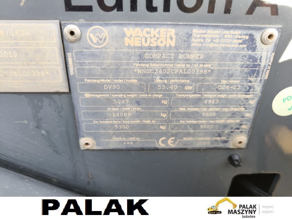 Wozidło przegubowe WACKER NEUSON DV 90 ,DUEL VIEW , 2020 rok